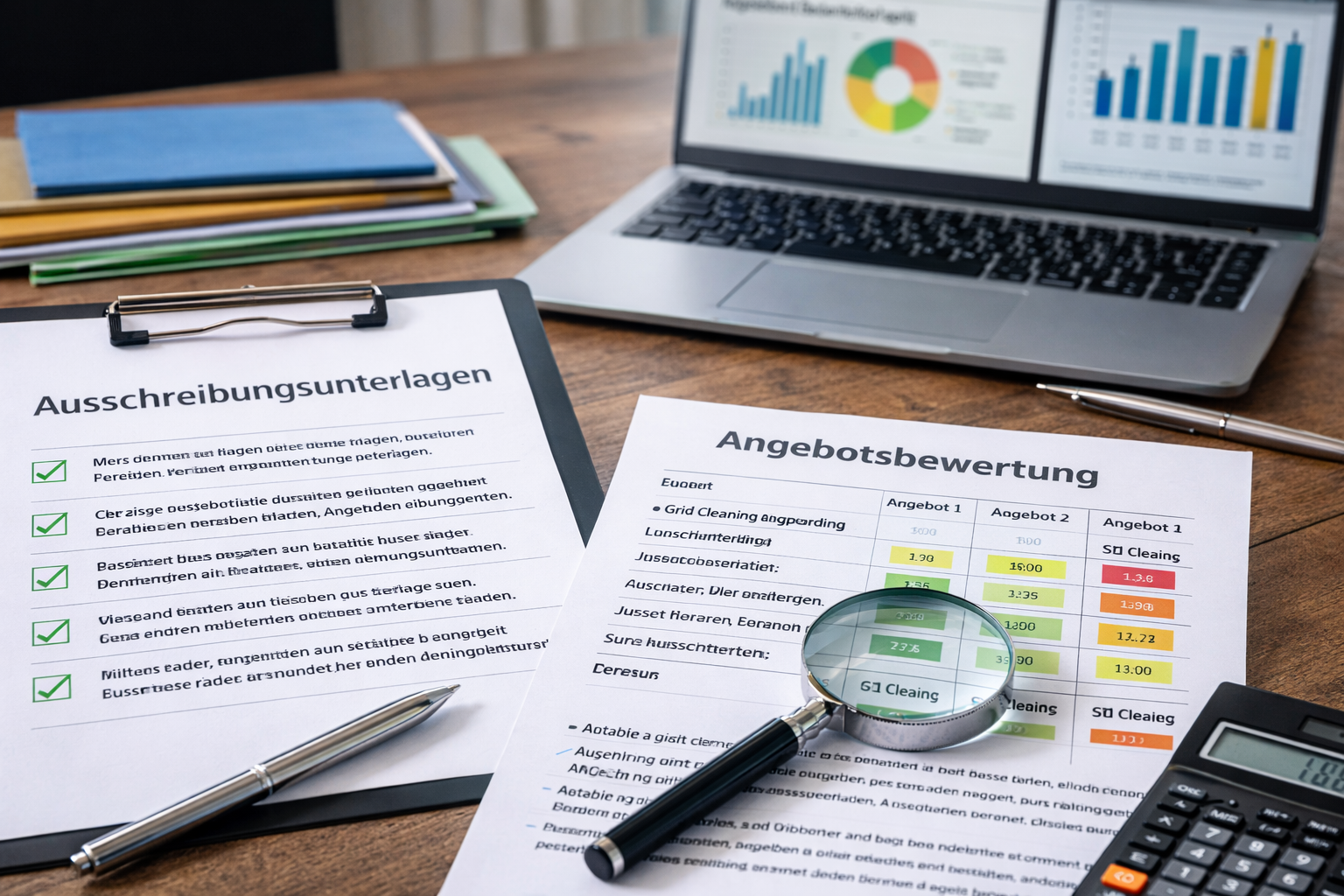 Wir unterstützen unsere Kunden bei der professionellen Erstellung und Optimierung von Ausschreibungsunterlagen für Reinigungs- und Serviceleistungen. Dabei achten wir darauf, dass alle Anforderungen klar definiert, Leistungen präzise beschrieben und die Rahmenbedingungen transparent dargestellt werden. Eine strukturierte und fachlich fundierte Ausschreibung bildet die Grundlage für vergleichbare Angebote und eine wirtschaftliche Vergabe.