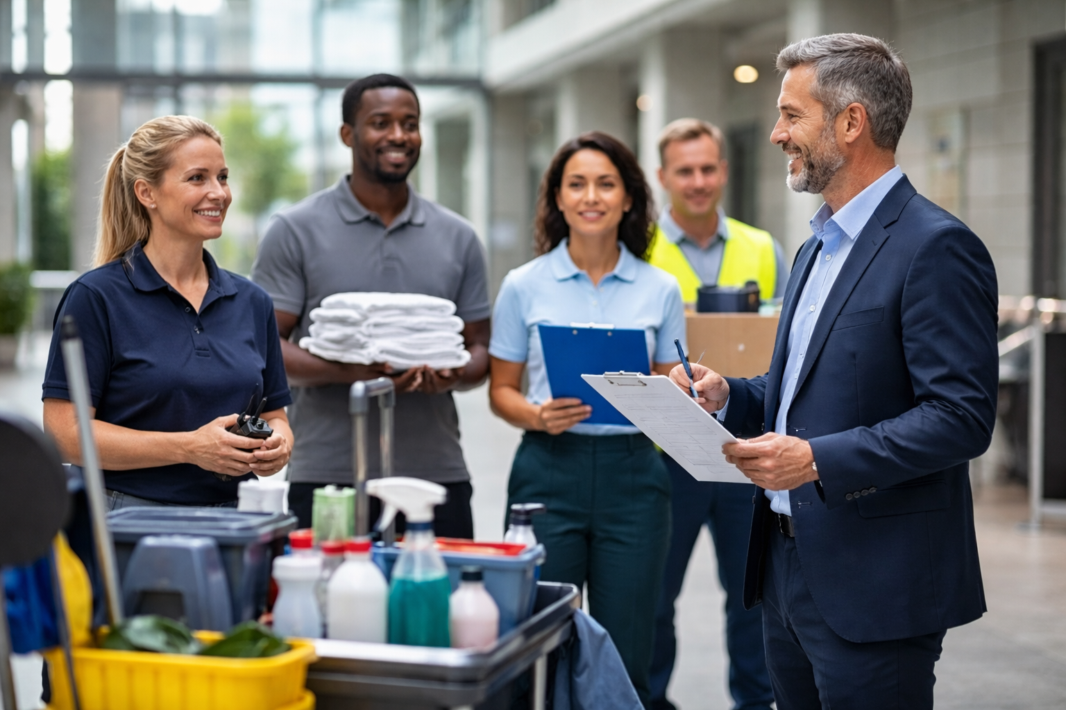 Darüber hinaus kümmern wir uns um die Organisation und Bereitstellung der erforderlichen Arbeitsmittel, Geräte und Materialien. Durch unsere strukturierte Planung und praktische Erfahrung stellen wir sicher, dass alle Abläufe von Anfang an funktionieren und der Objektstart professionell, effizient und ohne unnötige Reibungsverluste erfolgt.