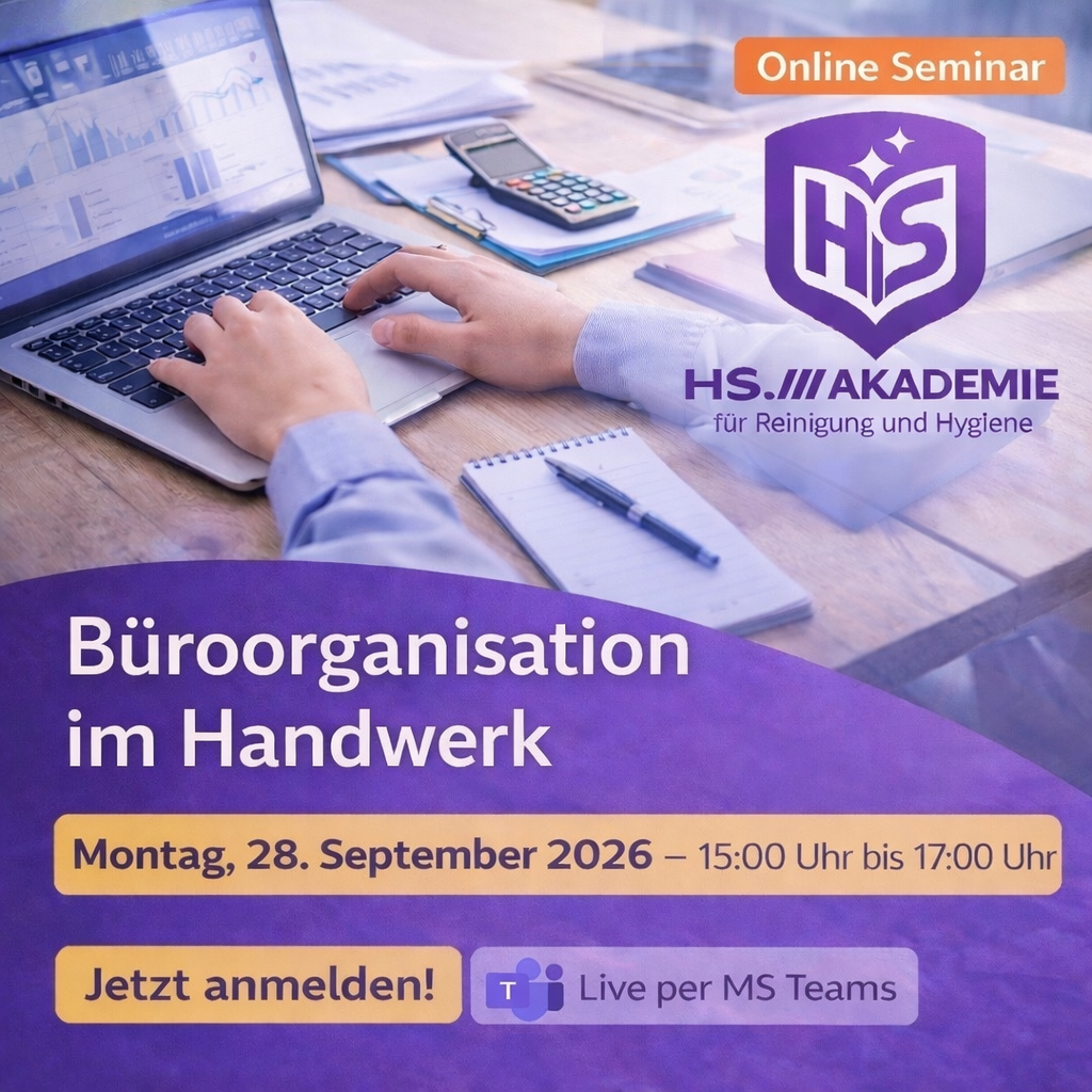 Im Rahmen dieses Online-Seminars werden die grundlegenden Prinzipien einer effizienten Büroorganisation im Handwerk vermittelt und anhand praxisnaher Beispiele verständlich erläutert. Im Fokus steht dabei insbesondere die Frage, wie administrative Abläufe strukturiert, zeitsparend und zukunftssicher gestaltet werden können.